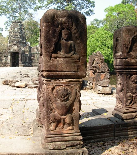 • เสานางเรียง ทางเข้าปราสาททั้งด้านทิศตะวันตกและทิศตะวันออกของปราสาทพระขรรค์ สองฟากฝั่งมีเสานางเรียงเป็นแถวยาว ระยะทางประมาณ 300 เมตร