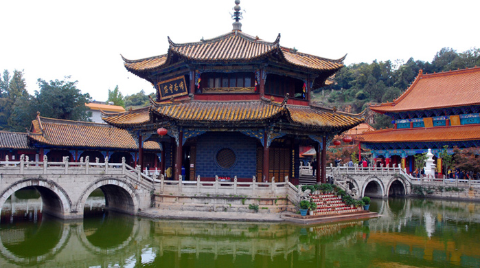 วัดหยวนทง วัดแห่ง นี้เป็นวัดที่ใหญ่และเก่าแก่ที่สุดในเมืองคุนหมิง สร้างมาตั้งแต่สมัยราชวงศ์ถังมีอายุยาวนานประมาณ 1,200 กว่าปี แต่การสร้างวัดแห่งนี้ดูแล้วจะแปลกตากว่าวัดอื่นๆในจีน เพราะปกติแล้วการสร้างวัดของจีนส่วนมากจะต้องสร้างอยู่บนภูเขา แต่วัดหยวนทงสร้างวัดต่ำกว่าภูเขา โดยวิหารจะอยู่ต่ำที่สุด เนื่องจากวัดแห่งนี้ไม่ได้สร้างขึ้นเพื่อเป็นวัดโดยตรง แต่เคยเป็นศาลเจ้าแม่กวนอิมมาก่อน วัดหยวนทงที่เราเห็นอยู่นี้เป็นลักษณะของวัดในสมัยราชวงศ์ชิง เนื่องจากวัดนี้ได้ถูกทำลายในสมัยราชวงศ์หมิง และได้รับการบูรณะโดยอู๋ซานกุ้ย ในสมัยที่อู๋ซานกุ้ยมาปกครองที่คุนหมิง