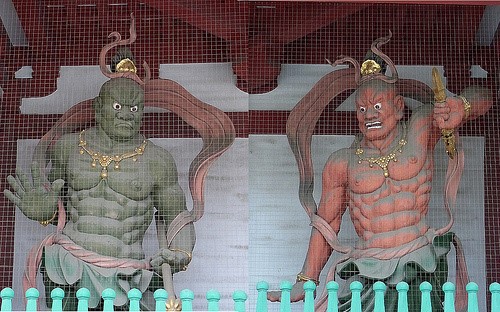 เมื่อเดินมาสุดถนนก็จะพบกับซุ้มประตูใหญ่อีกหนึ่งซุ้ม ซึ่งก็มีโคมกระดาษสีแดงลูกใหญ่แขวนอยู่อีกหนึ่งลูกเขียนว่า โคะบุเนะโจ ด้านซ้ายและขวาจะมีเทพทวารบาลคอยขับไล่สิ่งชั่วร้ายอีก 2 องค์ ที่ คนญี่ปุ่นเรียกว่า “อา-อุม” ส่วนด้านหลังซุ้มจะมีรองเท้าเชือกสานแบบโบราณขนาดยักษ์แขวนอยู่ฝั่งละข้าง เพื่อเป็นการข่มขู่สิ่งชั่วร้ายทั้งหลายว่านี่เป็นขนาดฝ่าเท้าของเทพทวารบาล