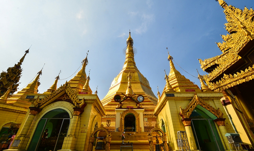 เจดีย์สุเลย์หรือที่เรียกว่าสุเลพญา (sule paya) เป็นเจดีย์ทรงแปดเหลี่ยมสีทองถ้าเป็นกรุงเทพก็ประมาณอนุสาวรีย์ชัย ถนนสายหลักทุกสายพุ่งเข้าหาเจดีย์นี้ นั่นเพราะสมัยที่อังกฤษครองพม่า ได้วางผังเมืองแบบ Victorian grid-plan โดยยึดเจดีย์สุเลเป็นศูนย์กลาง ถ้าไปดูแผนที่ตัวเมืองย่างกุ้งจะเห็นว่าถนนตัดกันเป็นบล็อกสี่เหลี่ยมแล้วมี เจดีย์สุเลอยู่ตรงกลาง เป็นวงเวียนให้รถวิ่งวนไปวนมาไม่เพียงเท่านั้นนะคะยังเป็นที่ที่พม่านับถือ อายุเป็นพันๆปีซึ่งเก่ากว่าเจดีย์ชเวดากองฐานเจดีย์โดยรอบมีพระประจำวันเกิด ให้สักการบูชาตามธรรมเนียม เราจะได้เห็นชาวพม่าเข้ามากราบไหว้ ทำบุญเป็นเรื่องปกติเลยค่ะ ทีมยักษ์ใหญ่เข้าไปก็จัดเต็มค่ะใครเกิดวันอะไรเขาให้ไหว้และรดน้ำพระประจำ วัน