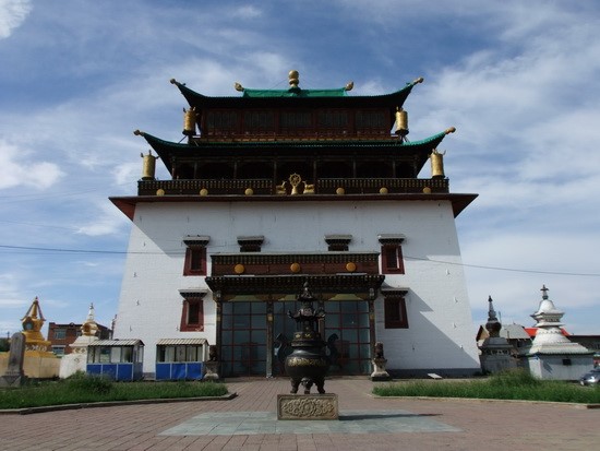 เป็นวัดพระพุทธศาสนาที่ใหญ่ที่สุดของมองโกเลีย สร้างเสร็จ ในปี ค.ศ. 1838 มีพระจำพรรษาอยู่กว่า 500 รูป วัดนี้ถูกทำลายโดยคอมมิวนิสต์ในปี ค.ศ.1937 แต่ได้มีการฟื้นฟูปฏิสังขรณ์ขึ้นมาใหม่ในปี ค.ศ.1990 ปัจจุบันนับว่าวัดนี้ มีความสำคัญมากที่สุดของเมืองอูลานบาตอร์ และเป็นศูนย์รวมจิตใจของชาวพุทธในประเทศมองโกเลีย ในบริเวณวัดกานดาน ยังมีวัดขนาดย่อมอีก 2 วัดได่แก่ วัด ออชิดารา Ochidara Temple และ วัด ไดดาน-ลาฟราน Didan-Lavran Temple
