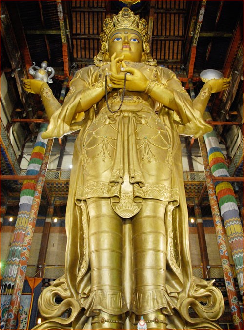 ภายในพระวิหารประดิษฐานพระอวโลกิเตศวร ซึ่งมีความสูงถึง 27 เมตร