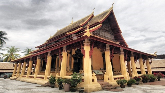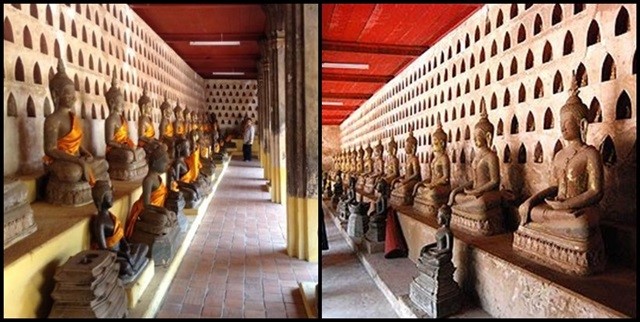 วัดสีสะเกด วัดสีสะเกด หรือวัดสะตะสะหัสสาราม (วัดแสน) เป็นวัดที่สร้างขึ้นแห่งแรกในนครเวียงจันทน์ สตสหัสส แปลว่า 100,000 อาราม แปลว่า วัด วัดสตสหัสสาราม จึงแปลว่า วัดแสน ในอดีตเป็นที่ประทับของสมเด็จพระสังฆราช (ลาว) ศักดิ์ของวัดนี้เทียบเท่าวัดพระเชตุพนวิมลมังคลาราม (วัดโพธิ์ฯ ท่าเตียน ของไทย) เหตุที่ชื่อวัดแสนก็เพราะว่า พระเจ้าไชยเชษฐาธิราชและพุทธศาสนิกชนชาวลาวในอดีต ทรงสร้างพระพุทธรูปทั้งองค์เล็กและองค์ใหญ่ประดิษฐานไว้ทั่ววัด 100,000 องค์ ดังนั้นจึงมีชื่อเล่นว่าวัดแสน แต่ปัจจุบันมีเหลืออยู่ประมาณ 10,000 กว่าองค์เท่านั้น ไกด์บางคนบอกว่ามี 6,000 กว่าองค์ แต่ถึงอย่างไรก็ตาม วัดนี้ก็มียังมีพระพุทธรูปมากที่สุดในนครหลวงเวียงจันทน์วัดสีสะเกด ตั้งอยู่ใจกลางตัวเมืองนครหลวงเวียงจันทน์ ติดกับหอคำ พระราชวังหลวงของกษัตริย์ลาวสมัยก่อนสร้างขึ้นในปี พ.ศ. 2094 โดยพระเจ้าโพธิสารราช พระบิดาของพระเจ้าไชยเชษฐาธิราช ในศตวรรษที่ 16