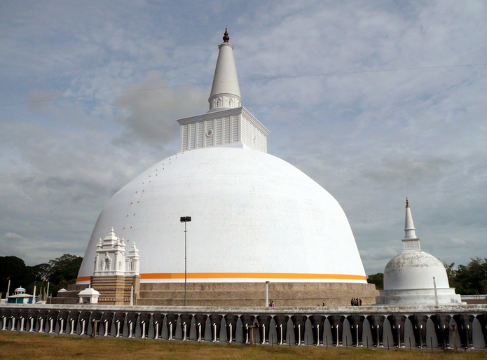 พระมหาเจดีย์รุวันเวลิสยา ชาวศรีลังกาเรียกกันหลายชื่อ เช่น สุวรรณมาลิกเจดีย์ รัตนมาลี เหมปาลี รุวันเวลิสยา พระมหาเจดีย์มีขนาดใหญ่ ปูด้วยก้อนหินภูเขา โดยใช้ช้างลากหินเหล่านั้นมา เพราะฉะนั้นเราจะเห็นการสร้างช้างล้อมไว้เพื่อเป็นอนุสรณ์ให้กับช้างที่ได้ ช่วยในการก่อสร้างพระมหาเจดีย์นี้ด้วยพระมหาเจดีย์รุวันเวลิสยา ประวัติความเป็นมานั้น พระเจ้าเทวานัมปิยติสสะ ได้ให้ดอกจำปากับพระมหินเถระพระมหินเถระจึงโปรยดอกไม้ลงไปในแผ่นดินบริเวณ หนึ่ง แผ่นดินก็ไหว พระราชาจึงได้ถามพระเถระว่าเหตุใดแผ่นดินจึงไหว พระเถระทูลตอบพระราชาว่า ณ บริเวณนี้ จะเป็นที่ประดิษฐานพระมหาเจดีย์อันไม่มีใครเหมือนเลย พระราชาจึงได้ถามพระเถระว่าใครจะเป็นผู้สร้างพระเถระทูลว่าไม่ใช่พระองค์ สร้างแต่จะเป็นพระนัดดา(หลาน)คือพระเจ้าทุฏฐคามณีอภัยเป็นผู้สร้างพระมหา เจดีย์นี้ ซากโบราณสถานนี้จะเป็นวิหารที่มีอยู่หลายหลังด้วยกันขนาดไม่ใหญ่นัก ฐานทำด้วยหิน มีเสาหินปักเรียงรายอยู่ หลังคามุงด้วยกระเบื้อง ยอดของเสาหินจะมีลวดลายแกะสลักเป็นรูปคนแคระหรือยักแบกปรากฏอยู่ และตรงหน้าบันไดวิหารจะต้องมีอัฒจันทร์ วางอยู่บนพื้นดินเสมอ และจะแกะสลักเป็นเป็นภาพต่างๆตรงกลางจะเป็นรุปดอกบัวครึ่งดอก จากนั้นจะเป็นแนวโค้งรอบดอกบัวต่อกันออกไปหลายๆแนวมักนิยมสลักเป็นรูปสัตว์ 4 ชนิดเรียงกันอยู่ในแนวนอกสุด คือ ช้าง ม้า วัว และสิงโต สันนิษฐานกันว่ารูปสลักบนอัฒจันทร์ รูปช้าง ม้า วัว และสิงโต หมายถึงทิศหลักทั้ง 4 ทิศ ส่วนรูปสลักหงส์หรือห่าน หมายถึงทิศทั้ง 5 ทิศข้างบนที่อยู่เหนือศรีษะ ผู้ใดเดินผ่านเหมือนได้ขึ้นสวรรค์