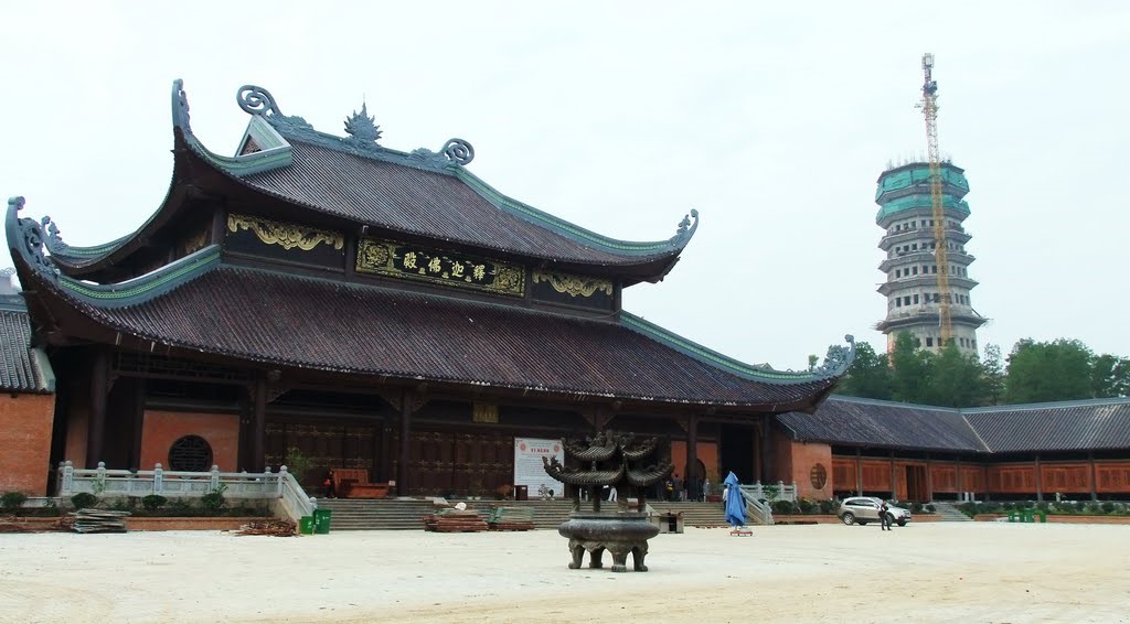 วัดบ๊ายดิ๊งห์เก่าแก่ตั้งอยู่บนภูเขา ดิ๊งห์สูง ๑๘๗ เมตรและถูกก่อสร้างมากว่า ๑,๐๐๐ปี การเดินทางขึ้นวัดต้องปินบันไดหินกว่า ๓๐๐ ขั้น วัดประกอบด้วยอาคารเตี่ยนเดื่องที่ตั้งอยู่ตรงกลาง ทางฝั่งขวามือของวัดคือถ้ำซ้างที่บูชาพระพุทธเจ้าและเทพกาวเซิน ฝั่งซ้ายมือคือถ้ำโต๊ยที่บูชาเจ้าแม่และนางฟ้า สถาปัจยกรรมของวัดตามรูปแบบวัดกับถ้ำสลับกันที่เห็นทั่วไปในเวียดนาม คุณโด่หงอกแอ๊ง ไกด์นำเที่ยวบรรยายว่า “ ด้านบนของประตูเข้าถ้ำซ้างมีคำว่า มินห์ดิ๋งห์แยงลามหรือทิวทัศน์ที่เลื่องชื่อลือนาม ที่ กษัตริย์เลแท้งตงพระราชทานให้อันเป็นการกล่าวถึงความสวยงามของที่นี่ เพดานถ้ำเป็นหลังคาวัดที่ทนทานและปกป้องที่ประทับของพระพุทธเจ้าและเจ้าแม่ หิ้งบูชาได้รับการจัดตามรูปแบบของวัดเวียดโบราณที่มีพระพุทธรูปและเจ้าแม่ กวนอิม”