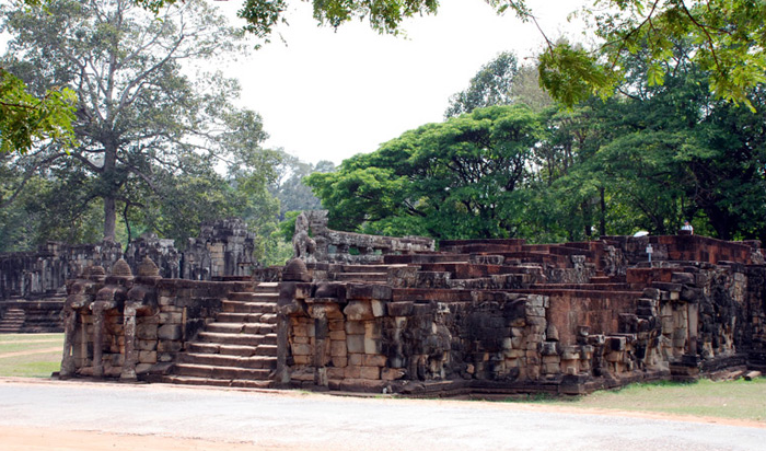 • ปราสาทบาปวน จัดเป็นปราสาทแรกในกลุ่มปราสาทเมืองพระนคร มีทางเดินผ่านตัวปราสาทเป็นสะพานหินยกระดับทอดยาว ทางเดินเข้าผ่านโคปุระรูปกากบาท 3 ทาง ตัวปราสาทหันหน้าไปทางทิศตะวันออก ที่ตั้งของปราสาทอยู่ในเขตพระราชวังหลวง เป็นปราสาทที่มียอดสูง มีหลักฐานจากการบันทึกของจิวต้ากวนราชทูตจากเมืองจีนในปลายพุทธศตวรรษที่ 18 กล่าวไว้ว่า ยอดปราสาทบาปวนเคลือบด้วยสำริดแลอร่ามแต่ไกล หากยอดไม่หักพังเสียก่อน คาดว่าปราสาทบาปวนอาจมีความสูงกว่าปราสาทพิมานอากาศ ซึ่งอยู่ใกล้ๆ กัน ปัจจุบันนี้ปราสาททรุดโทรมมากและกำลังได้รับการบูรณะอย่างต่อเนื่อง