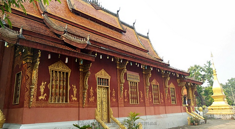 วัดแสนสุขาราม ที่ตั้ง ถนนเชียงทอง ภายในตัวเมือง ใกล้กับวัดสงบลงมาทางทิศตะวันตกเฉียงใต้ วัดแสนสุขาราม สร้างขึ้นในพ.ศ. 2261 ตามประวัติกล่าวว่าชื่อของวัดมาจากเงินจำนวน 100,000 กีบ ที่มีผู้บริจาคให้เป็นทุนเริ่มสร้าง เป็นวัดเก่าแก่ที่ถูกสร้างขึ้นภายหลังที่นครหลวงพระบางแยกออกจากนคร เวียงจันทน์ได้ 11 ปี โดยวัดแสนได้รับการบูรณะ 2 ครั้ง ครั้งแรกเมื่อปีพ.ศ. 2475 ครั้งที่สองเมื่อพ.ศ. 2500 ส่วนการประดับลวดลายปิดทองนั้นบูรณะเมื่อคริสศตวรรษที่ 20 โดยช่างชาวหลวงพระบาง